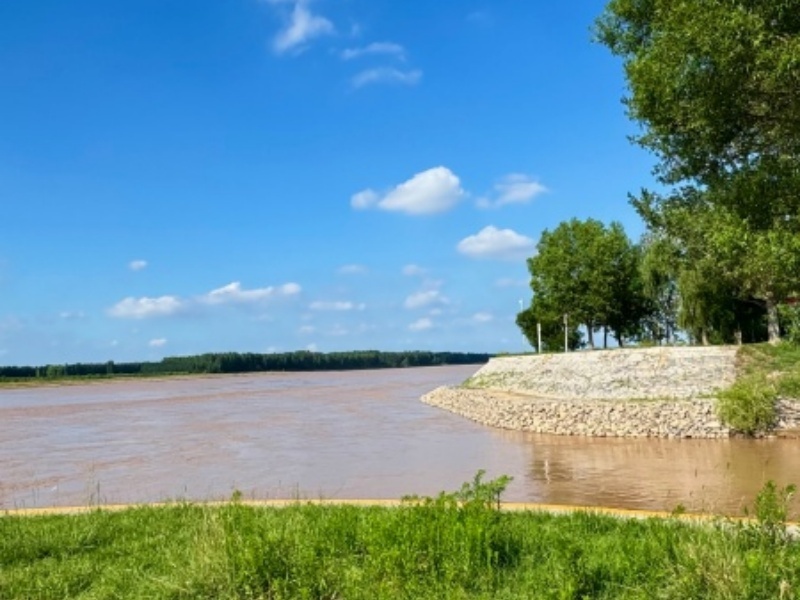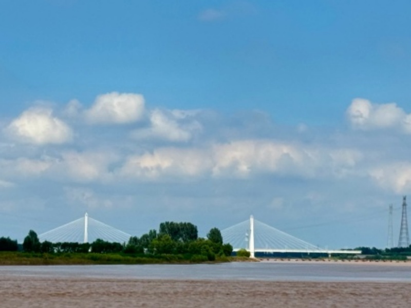 先前被雨水搅起的浊浪已渐渐平息,水色稍清,却仍带着黄河独有的苍劲。大朵大朵的云彩悬在半空,像是揉碎的棉絮,又像是撒在蓝绸上的玉团,带来了初秋独有的清爽。云影投在河面之上,一会儿铺成大片的阴翳,一会儿被风扯成细碎的光斑,给黄褐色的河面缀上流动的留白。偶有云低下来,仿佛要吻触水面,河风一过,又轻飘飘地掠向远方,留下一河的云影碎光。