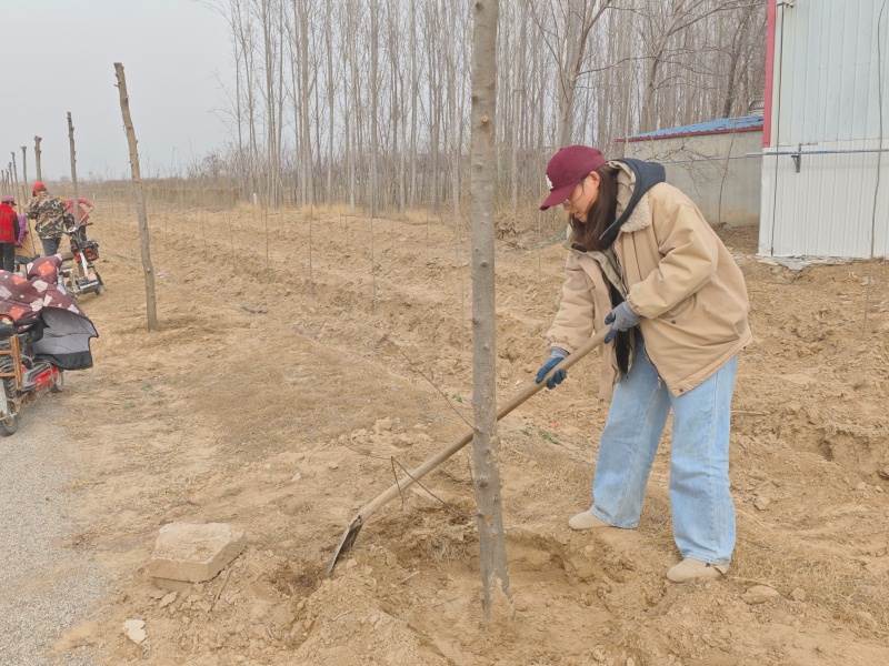 我与长清管理段的同事们一同投入这场与土地的对话。种树的人,挖坑、放苗、扶正、顺直、填土、踩实,每一个动作都十分专注,刚放下种树的铁锨,又立刻拿起耙子,转身去整平坝面、放线开沟、植下草皮。河风卷着沙尘,常常迷得人睁不开眼,汗水混着泥土,在脸上悄悄凝结成一张独特的“黄河面膜”。一双手很快磨出了水泡,水泡破了,便结成厚茧——我们笑称,这是“黄河人独有的勋章”。
