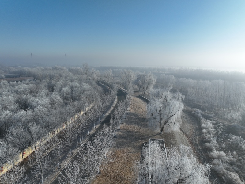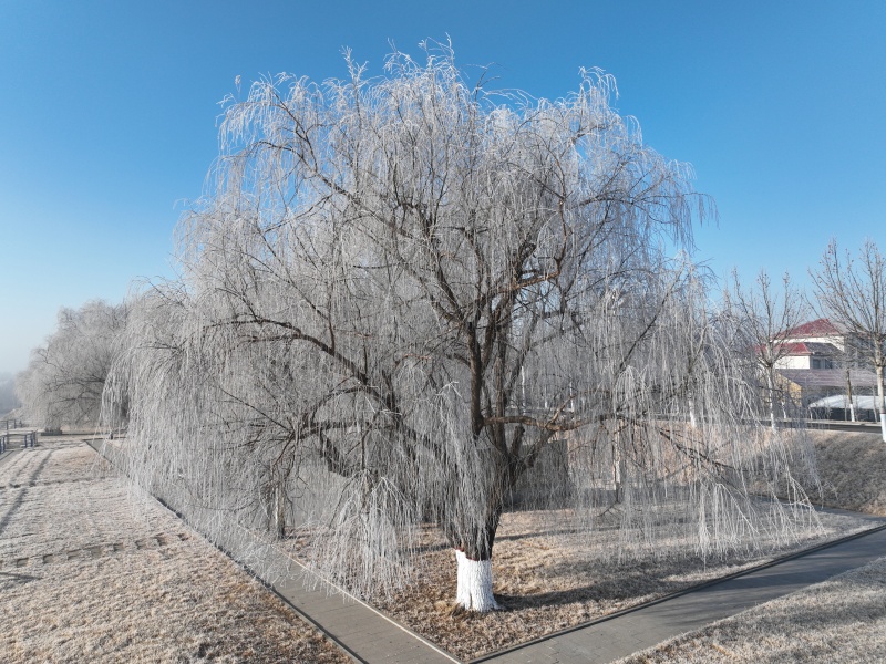 近日,利津县黄河岸畔迎来冬日馈赠。连日低温与黄河水汽交融,利津县全域悄然绽放雾凇奇观,从黄河大堤到城乡林间,玉树琼枝凝霜挂雪,宛如一幅天然水墨画,为寒冬时节增添了一道独特而壮美的风景。(高倩 潘佳佳)