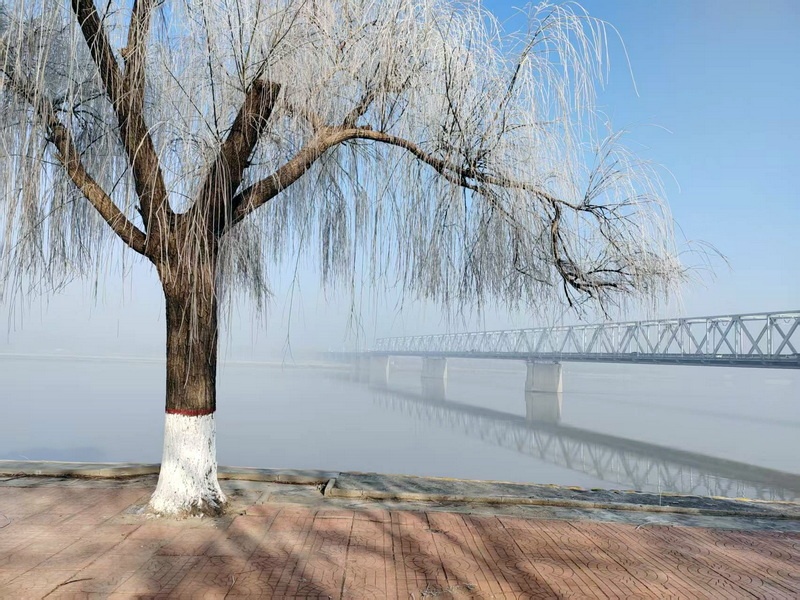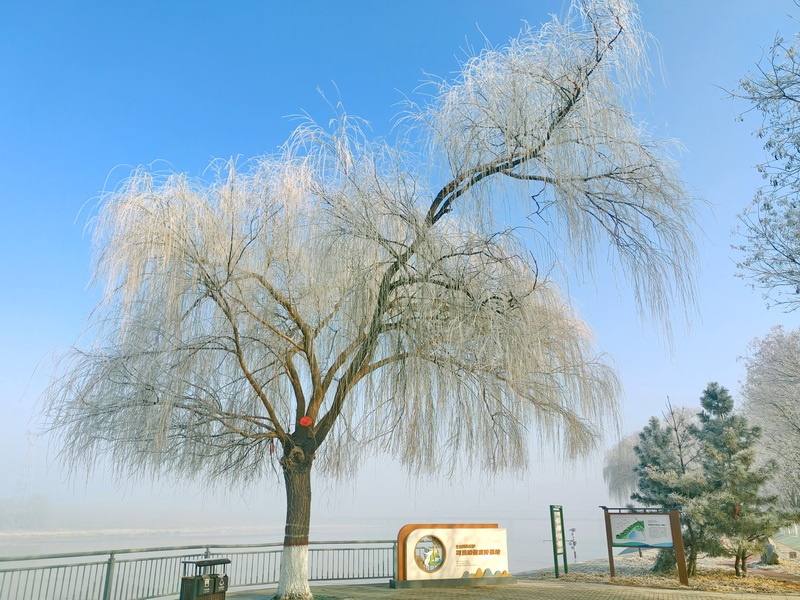 雾凇的美妙,正在这“各美其美”。柳的飘逸,竹的清透,松的俊朗,槐的朴拙,皆以冰为魂,却因风骨不同而各展风华。伫立长堤,看冰晶渐染朝晖金晕,雾凇在暖意中渐渐消融,这转瞬即逝的冰雪美景,是冬天最后的深情诗篇,亦是春天悄然将至的温柔预告。(马洁)