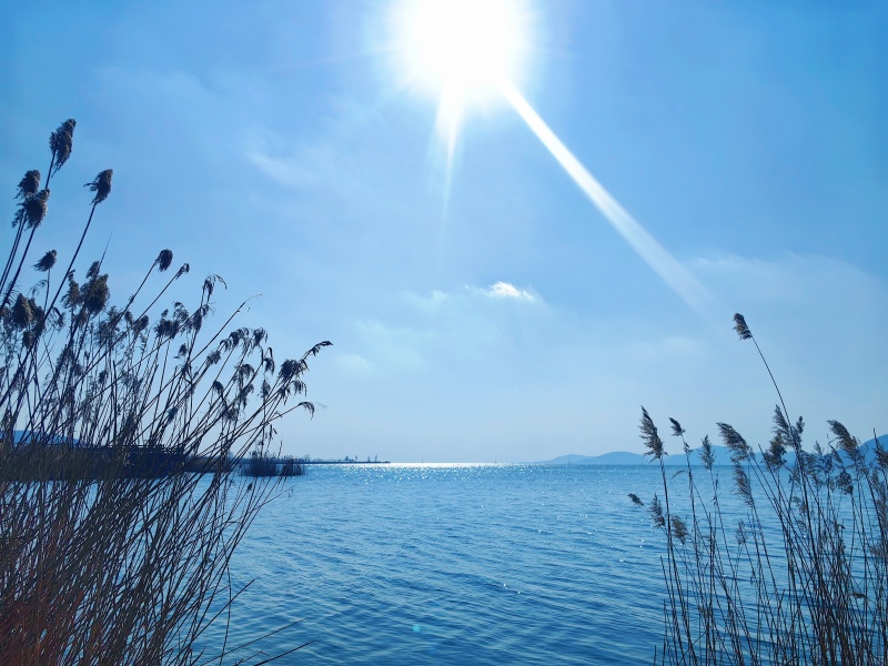 湖面的冰渐渐化开,碧水映着蓝天,波光轻轻晃着,揉着冬日的余温,也藏着对春天的盼头。 岸边芦苇摇摇晃晃,枯黄的枝子里钻着新绿,风一吹簌簌响,添了好些生气。偶尔有渔舟划过水面,搅碎一湖天光,桨声轻摇,漾出湖畔渔家的悠然。远山笼着淡黛,映在清凌凌的水里,天地间,清清爽爽,又处处是鲜活的气息。