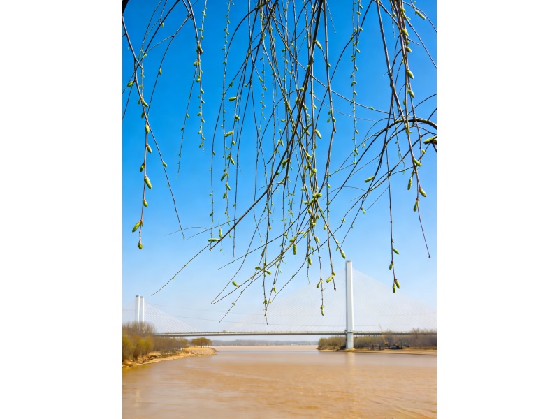 岸边的柳树抽出嫩黄的新芽,柔枝轻垂,随风而舞,似与母亲河低语。冻土渐渐松软,小草怯生生地探出嫩绿的脑袋,点缀在堤岸之上,为大地铺就一层浅浅的新绿。