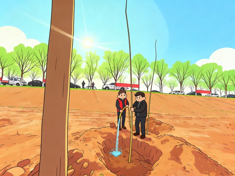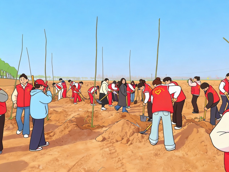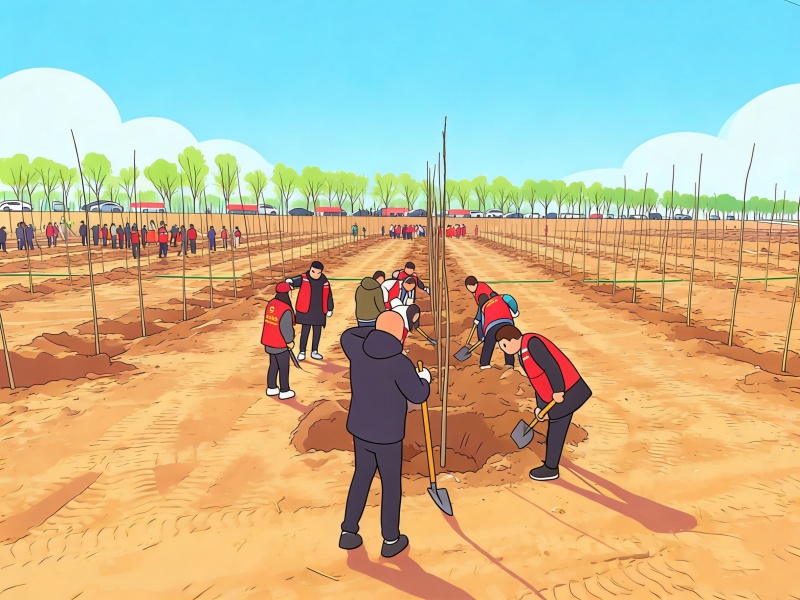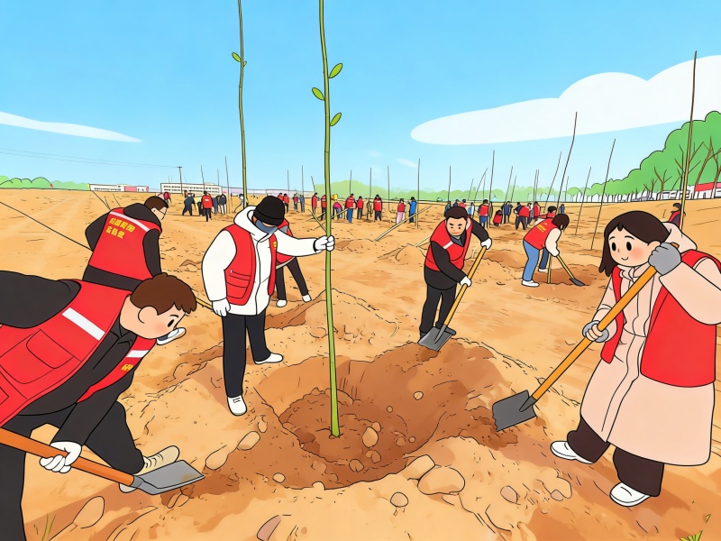 AI以灵动视角,定格下这片春日盛景。新栽的树苗亭亭而立,在风中轻摇新叶;大家挥锹培土、扶苗浇水,忙碌的身影被科技绘成温暖画面。数字与自然相融,科技与春意相伴,让黄河岸边的植树场景,多了一份清新与美好。