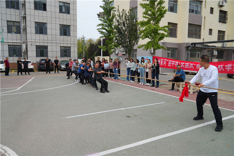 赛场上,旋转接力、抢凳子、螃蟹赛跑、跳绳接力和拔河等集趣味性、协作性和竞技性于一体的竞赛项目轮番开赛,既有力量的角逐,又有智慧的较量;既是个人体育竞技水平的展示,又是对团队协作能力的检验。特别是在拔河比赛过程中,参赛队员努力拼搏,无论是场上还是场下,气氛都异常紧张,富有节奏的呐喊声、加油声,充斥在赛场上空,久久回荡。尤其是在胜负难分的时刻,大家毫不退却,咬紧牙关,坚持到底。一群人、一根绳、一股劲、一条心,激烈的比赛氛围将整个活动推向高潮,充分展现了德州黄河职工乘风破浪、一往无前的精神风貌及并肩携手、奋勇争先的不懈追求。