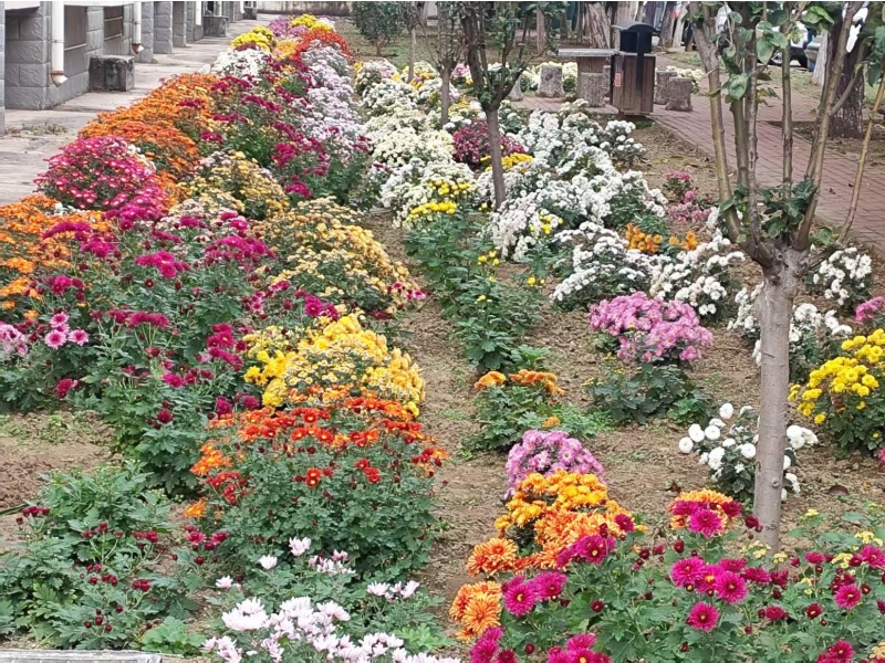 春光明媚时节,3000余株经北京林业大学专业团队多年选育的菊花珍品,为助力黄河保护治理和高质量发展远道而来。这些浸润着科技力量的苗木,携着抗寒抗旱的“硬核基因”,于春日土壤中在泰山脚下深深扎根;盛夏酷暑里,它们凭耐粗放管理的优势逆势生长,低矮匍匐的株型、强健旺盛的分枝能力,为盛放筑牢根基。如今,千菊竞艳,金黄者如绣球雍容华贵,粉白者若仙裙婀娜多姿,紫艳者似云霞绚烂夺目,吸引职工、家属争相定格的打卡地,随手一拍都是秋日氛围感大片,让河地融合的生态之美,绽放在秋日的庭院深处。(刘静)
