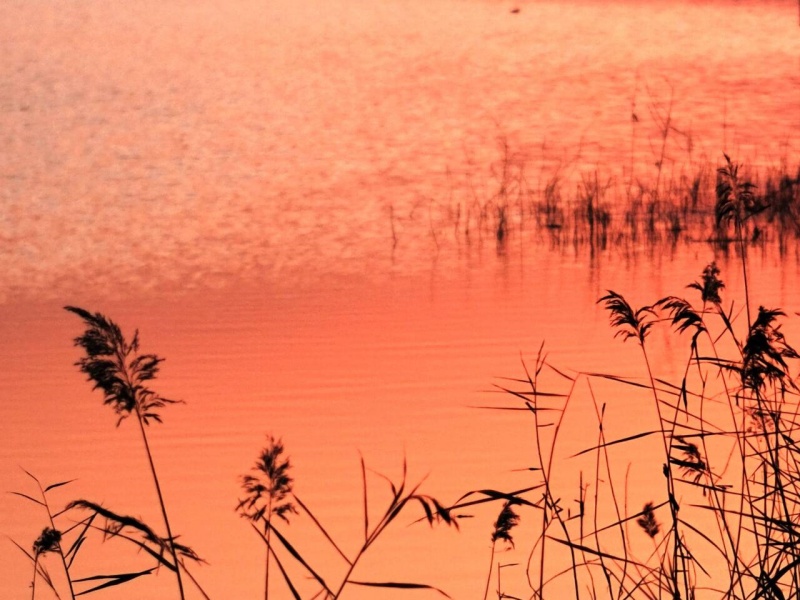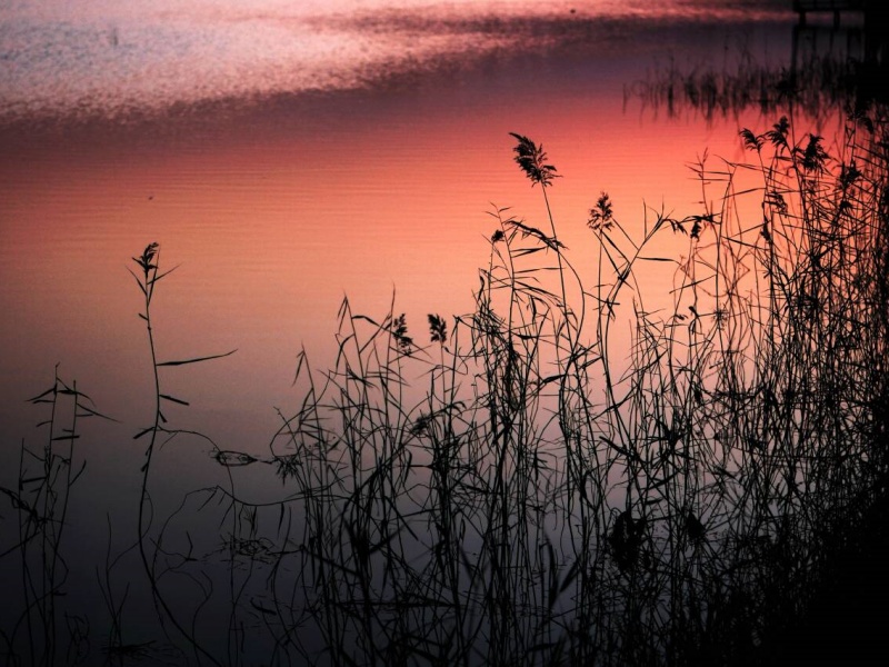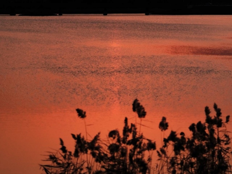 落日泊在树梢头,把天水交接处煨得滚烫。黄河驮着整片余温,用浩荡金波熨帖着白日的煊赫。微风摇过,粼粼波痕便成了散开的焰火。苇丛疏朗挺立,枝丫交错,一簇簇被霞光浸透的剪影,似墨非墨,仿佛一群沉静的画者,以倔强安然的姿态,将漫天火红敛入幽暗的轮廓。
