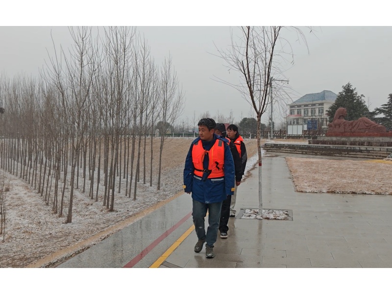 阳谷黄河、金堤河堤岸上,那抹橙红穿梭雪色,用一个个坚实脚印,把责任与坚守,镌刻在了长堤之上。(钟庄子)