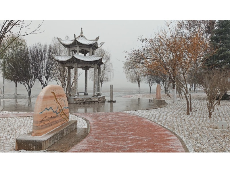 他们踏雪前行,湿滑步道挡不住坚定脚步,目光细致扫过坝根、堤脚,雪凝眉骨,守护的初心始终清亮。石亭覆雪、碑石凝霜,大河之畔晕染成水墨长卷。巡河人的脚步声、河水的流淌声,让这幅画有了守护的韵律。