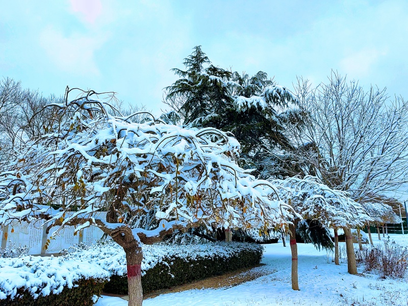 河畔法治阵地“让黄河成为造福人民的幸福河”的红色标语,在素净的世界里显得愈发醒目,似默默守护的铮铮誓言。风雪中伫立的松柏挂满雪花,似琼花绽放,为大河风景增添几分灵动与高洁。(任增花 刘健)