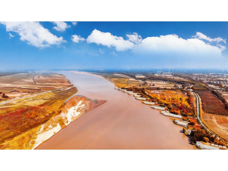秋风起,河岸的林木被晕染成橙黄与赤红,田畴间翻涌起金色的麦浪,黄河水在斑斓的色彩里流淌,仿佛载着整个秋天的丰硕,将丰收的气息送遍沿岸的村落。